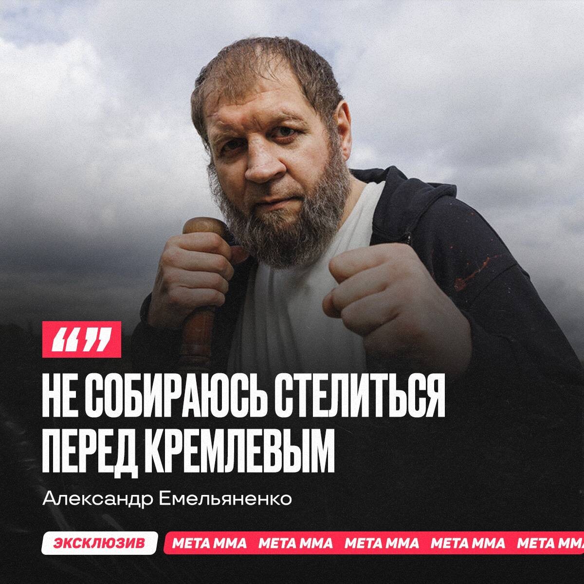 ». Емельяненко снова прошёлся по Кремлеву Александр Емельяненко продолжает заочный конфликт с Умаром Кремлевым и дал понять, что не намерен идти на уступки. «Я не говорю про Кремлева ничего отрицательного. Лучше бы Умар был заслуженным мастером спорта. Ему можно было бы присвоить это звание за вклад в развитие бокса в России. Просто его окружение не может сказать это Кремлеву в лицо. Если Умар захочет, у него есть мой номер телефона, у его окружения есть мой номер. Найти меня не проблема. Я сказал все, как есть. Ему это не понравилось, но я не собираюсь стелиться перед Кремлевым», — сказал Емельяненко в интервью MMA.Metaratings.ru. ❓ Не слишком жёсткая позиция? 👍 — Нет, вправе так говорить 🤔 — Перегнул 👊 Подпишись на Meta MMA | Meta MMA в MAX | Наш канал в ВК