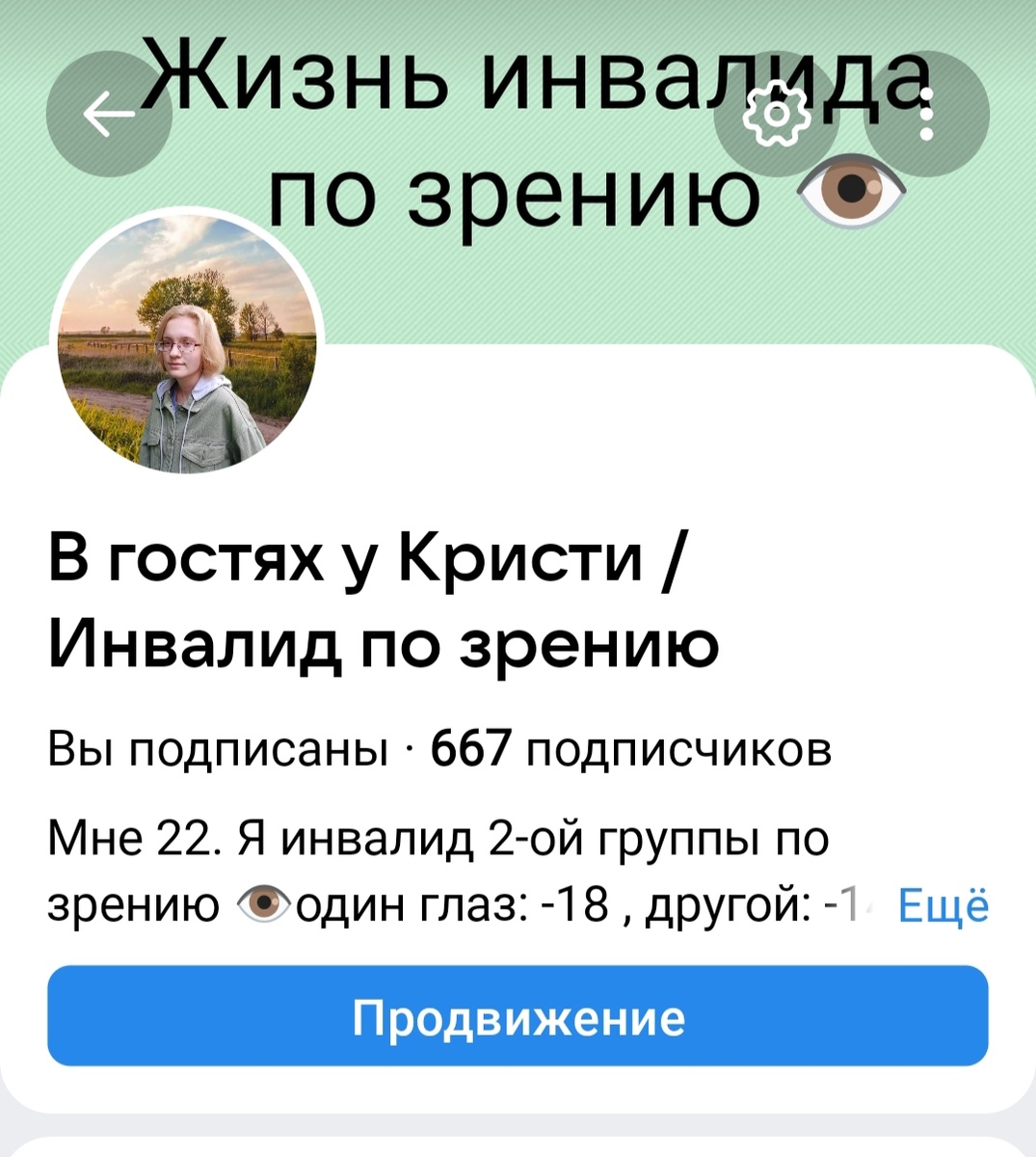 Ну во первых да у меня вторая группа инвалидности по зрению и я очень плохо вижу даже в очках а во вторых есть и другие проблемы со здоровьем . Многим этого не понять ..