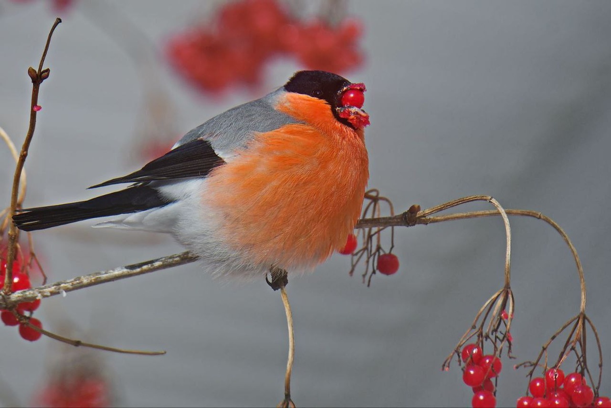 Красногрудые красавчики набили щечки😁
