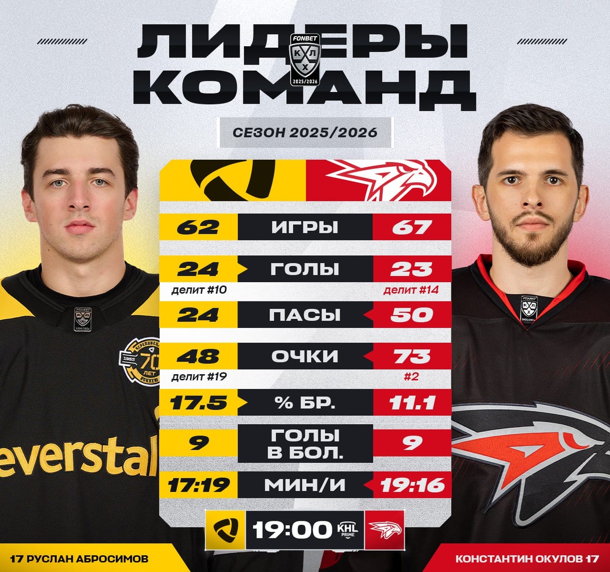 Руслан Абросимов и Константин Окулов проводят лучшие сезоны в карьере: этим вечером череповецкий #17 попробует набрать 50-е очко, а омский