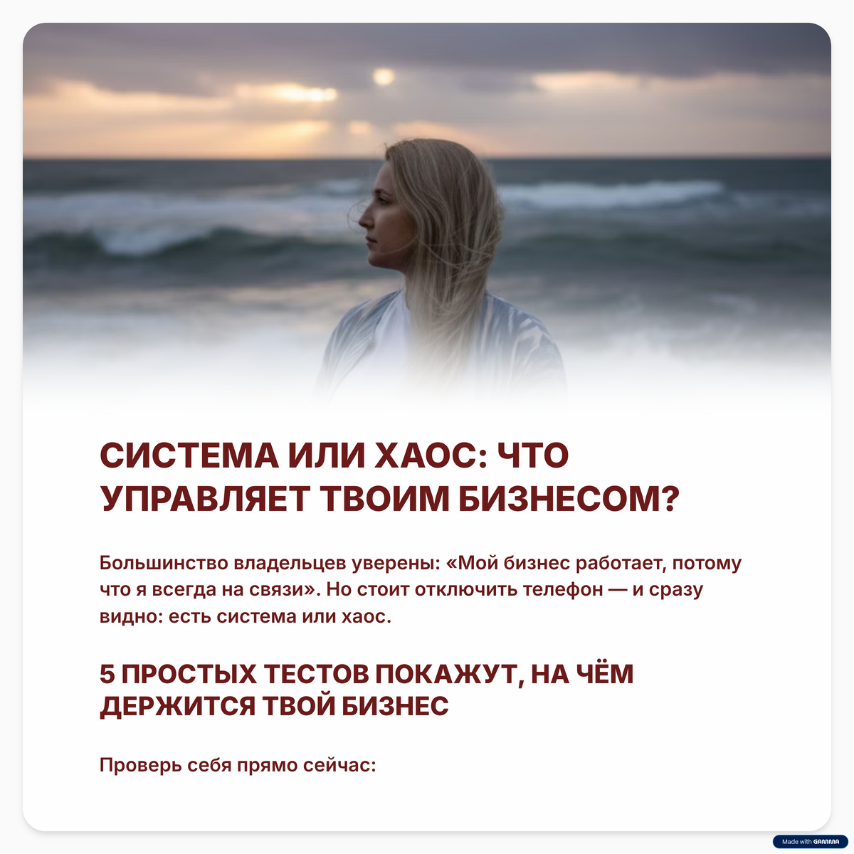 👉 у вас нет системы И это ключевой момент. Потому что: 👉 бизнес без системы = зависимость от собственника — вы постоянно вовлечены