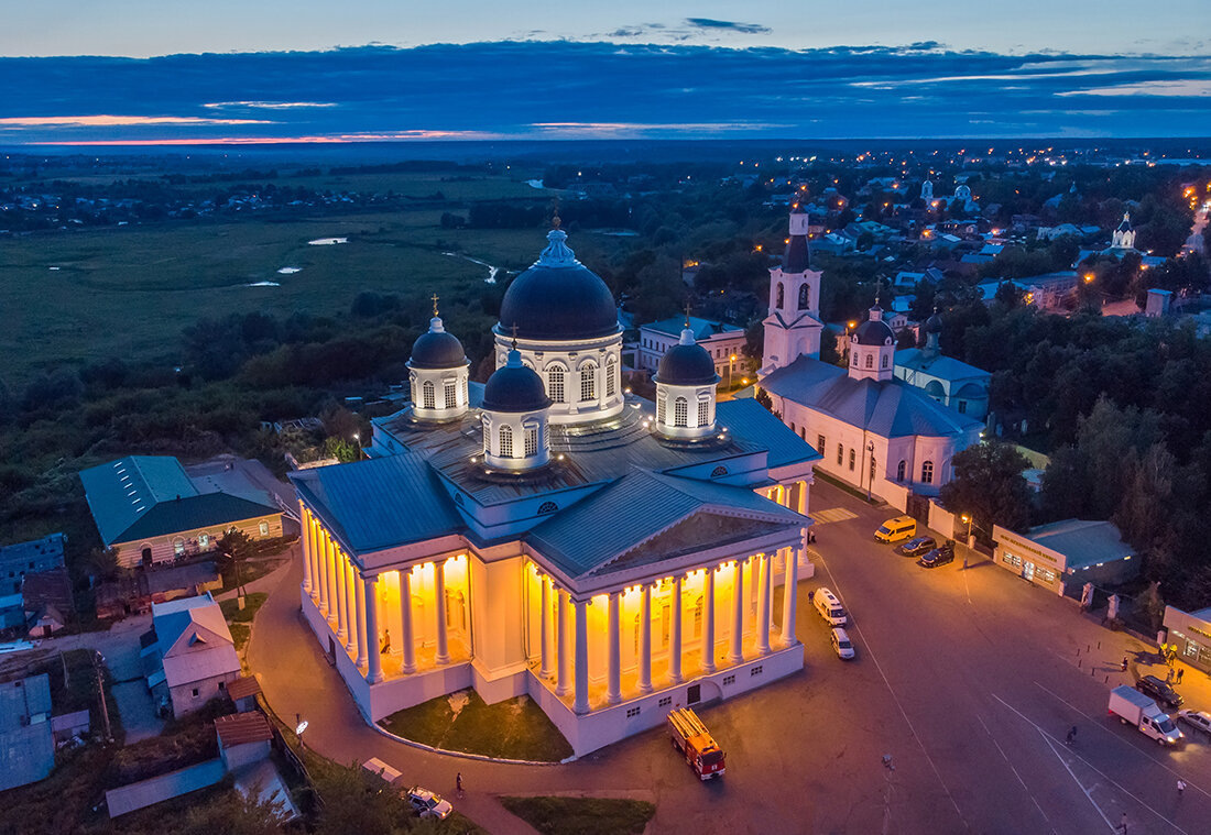 Арзамас — это купеческая Россия с масштабом, редким для провинции, и историей, которую можно прочитать буквально за несколько часов. Сердце Арзамаса — Соборная площадь. Здесь стоит Воскресенский собор — один из самых крупных храмов России XIX века. Его строгий силуэт видно издалека, а внутри — простор и свет, которые сложно ожидать от уездного города. Рядом — Никольский монастырь и старинные корпуса духовного училища. Всё в шаговой доступности. За один час можно обойти площадь, заглянуть в собор, почувствовать масштаб и понять, почему Арзамас называли «городом сорока церквей». От площади расходятся старинные улицы с купеческими домами. Здесь сохранились особняки XIX века, торговые ряды, здания гимназий и училищ. Это тот редкий случай, когда историческая среда не стилизована под старину — она настоящая. Обратите внимание на деревянные элементы, наличники, пропорции фасадов. Город небольшой, поэтому за вечер вы спокойно пройдёте весь центр без спешки. Арзамас связан с именем Гайдара — зд