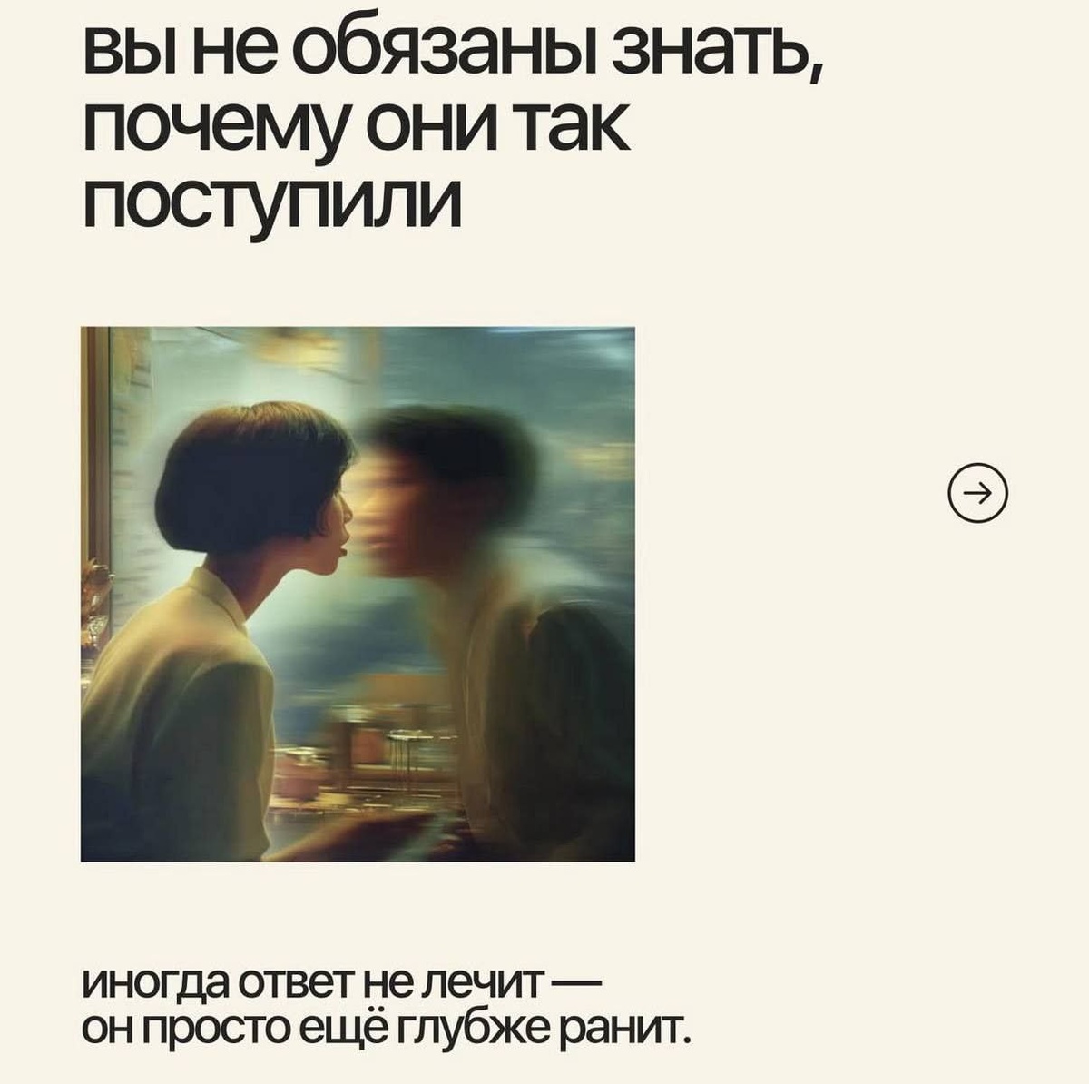 ! 🔮 Каждый день мы сталкиваемся с поведением других людей, которое может быть непонятным или даже болезненным. Но стоит ли нам стремиться понять и объяснить каждую ситуацию? В этой карусели мы обсуждаем важные аспекты взаимоотношений и внутренней свободы. Позвольте себе освободиться от ненужной тяжести и вернуть фокус на то, что действительно важно — вашу собственную силу и ценность. 📌 Приготовьтесь открыть для себя фундаментальные истины, которые изменят ваше восприятие и помогут найти уверенность в себе!