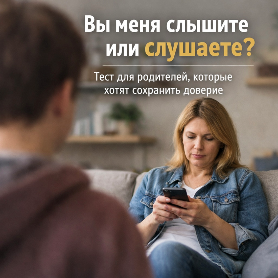 Рубрика 📝Мини-тест📝 — способ провести время и узнать что-то новое о себе Иногда дети, подростки, взрослые перестают делиться не потому, что им нечего сказать А потому что у них появляется ощущение: их не слышат Мы киваем, отвечаем, даже даём советы — но в этот момент можем быть в телефоне, в своих мыслях И тогда человек делает вывод: «Меня не понимают — значит, нет смысла и говорить» 💡Проверьте себя: вы больше СЛУШАЕТЕ или действительно СЛЫШИТЕ своего ребёнка? 📌 Инструкция В тесте представлены типичные ситуации и фразы, которые можно услышать от детей и подростков Как вы обычно реагируете? — Выбирайте обычный для вас вариант ответа 1️⃣Ребёнок говорит: «Меня сегодня учительница отругала перед всем классом» А) «Сам виноват, наверное, опять болтал или не сделал уроки?» Б) «Бедный мой! Учитель неправ, не обращай внимания» В) «Расскажешь подробнее, что случилось? — мне очень важно понять» Г) «Не драматизируй, в жизни еще не такое будет, привыкай» 2️⃣Подросток жалуется: «Никто меня не по