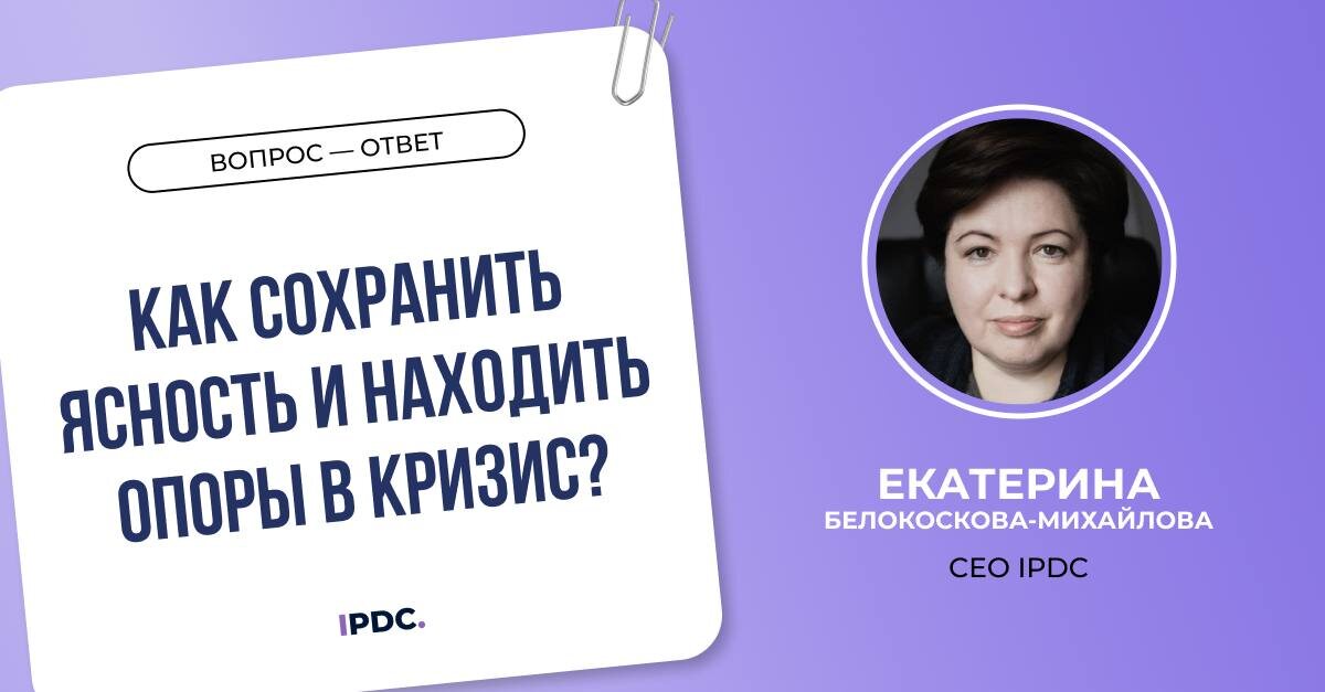 ➡️ «На что сегодня можно опираться профессионалу, чтобы сохранять ясность и способность действовать?» 😍 Отвечает Екатерина Белокоскова-Михайлова — CEO IPDC, член Американской Ассоциации Групповой психотерапии, групповой аналитик, коуч Помочь сохранить ясность в кризис могут три ключевых вектора: телесный (спорт, йога, танец — чтобы «заземлять» тревогу), смысловой (вера, творчество, понимание миссии своей работы) и человеческий (психотерапия, семья, дети, фигура значимого «Другого» как ориентир). Именно семья и дети часто становятся мостиком, который не даёт миру рассыпаться на понятия «обреченный» и «пустой». В психологии это называется «расширение временной перспективы»: когда мы видим не только сегодняшнюю боль, но и линию жизни от наших предков к нашим детям и внукам — и в этом моменте мы обретаем устойчивость. Опора — это не поиск твёрдой почвы под ногами (её сейчас нет), а умение удерживать равновесие, балансируя между разными сферами жизни. Для сохранения ясности ума нужно
