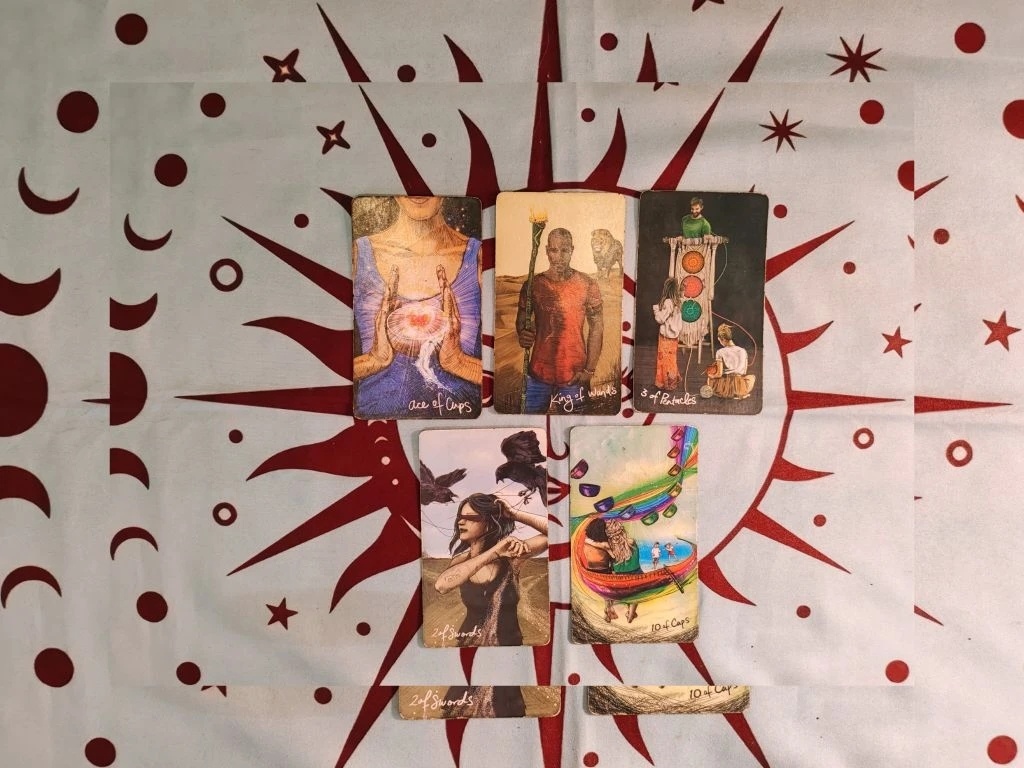 Это карта блокады или выбора. Несмотря на всю гамму положительных чувств (Кубки, Жезлы, Пентакли), здесь присутствует «стоп-кран» в голове. Он может специально закрывать глаза на свои чувства, делать вид, что ничего не происходит, или разрываться между каким-то выбором (возможно, между вами и старыми привычками/другим человеком/работой). Сердце говорит одно, а разум приказывает молчать и не вмешиваться. Это объясняет, почему при таких сильных картах он может не проявляться.