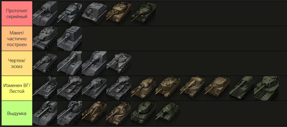Напомню, что ТТХ я здесь не сравниваю с реальными. И держите тирлист:
