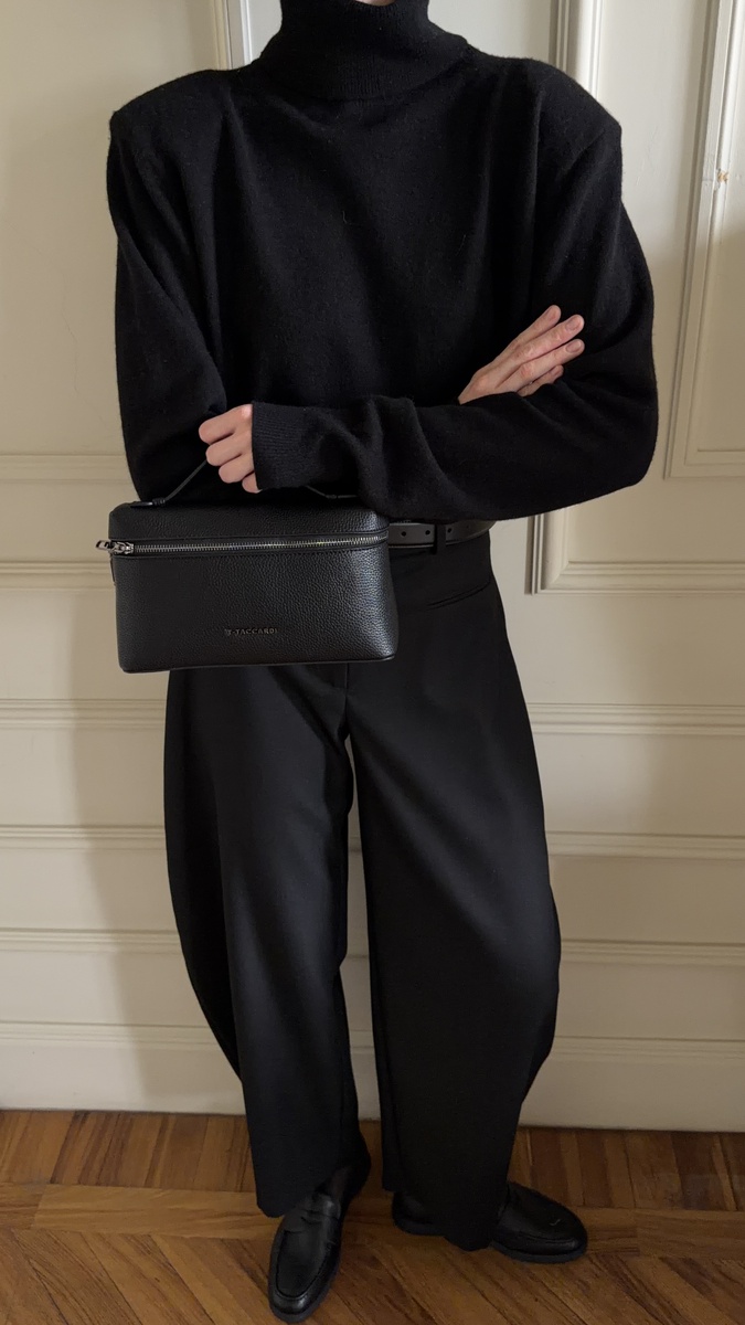 Черный — это больше, чем цвет. Это настроение, характер и тонко выстроенная эстетика. Весной 2026 он звучит особенно выразительно: не мрачно, а глубоко и благородно. Тотально черные образы продолжают оставаться символом уверенности и утонченности. В них всегда есть немного загадки и едва уловимая драма, которая притягивает взгляды. Но чтобы черный выглядел по-настоящему дорого и современно, важна игра нюансов. Главный прием сезона — контрасты объемов и фактур. Гладкая кожа рядом с зернистой, мягкие линии в сочетании с четкой геометрией, матовые поверхности против деликатного блеска. Именно такие сочетания делают образ сложнее, глубже и визуально богаче. Акценты играют ключевую роль: Лаконичные мокасины из гладкой натуральной кожи добавляют образу строгости и собранности, оставаясь при этом комфортной базой на каждый день. Компактный клатч из зернистой экокожи привносит фактурный контраст и завершает образ, делая его цельным. Черный этой весной — это не про минимализм ради простоты. Это