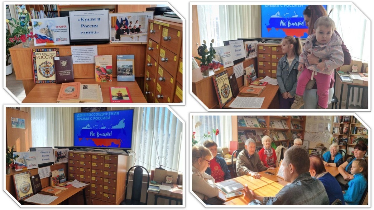 аспектов: это восстановление исторической справедливости это увеличение территории и населения страны это сохранение геополитически важной базы русского флота это помощь соотечественникам, находящимся в сложном положении, в соответствии с правилами нашей цивилизации «Своих не бросаем!». 16 марта 2014 года состоялся референдум о статусе Крыма. За воссоединение с Россией на референдуме в Крыму проголосовали 96,77%. 18 марта 2014 в Георгиевском дворце Кремля был подписан договор о вступлении Республики Крым и города Севастополя в состав Российской Федерации на правах новых субъектов. В ознаменование этой даты в Яблоновской городской модельной библиотеке №1 была организована выставка-просмотр «Крым и Россия едины» с обзором литературы и просмотром ролика по теме.