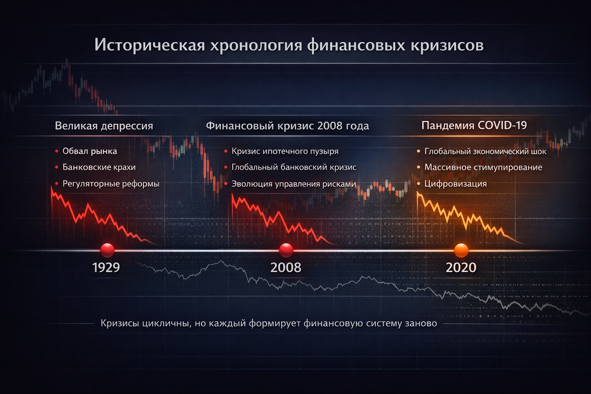 Всем добрый день и позитивного настроения! На рынке нефти, как вы видите, всё очень-очень интересно. Кто-то скупает нефть 🛢 большими объёмами (дешёвую!) Мы с клиентами уже наметили наши следующие ходы и торговые решения на ближайшие торговые сессии. Также по золоту и основным Индексам США Тема на сегодня звучит так - Роль кризисов в перезапуске финансовых моделей Напомним, что свои сделки и ежедневные прогнозы публикуем в закрытых-каналах. Кому интересно — пишите! Финансовые потрясения обычно воспринимаются как чисто разрушительные явления, но на самом деле они часто становятся поворотным моментом для всей финансовой архитектуры. Когда рынки переживают коллапс, ранее игнорируемые системные недостатки внезапно становятся очевидными, что заставляет регуляторов, финансовые учреждения и инвесторов переосмыслить принципы функционирования системы. События 2007–2009 годов наглядно иллюстрируют эту динамику. Когда в сентябре 2008 года обанкротился Lehman Brothers, это вызвало цепную реакцию,