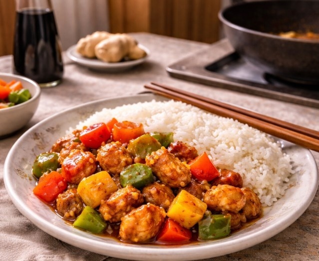 Леночка как-то заказала в кафе курицу по-китайски, сфотографировала и прислала мне: «Мам, попробуй повторить». Я посмотрела на фото, прикинула — ничего сложного. Триста граммов куриной грудки, та самая «скучная» часть, которую Володя вечно обходил стороной. Но тут она заиграла совсем по-другому. Грудку режу некрупными кусочками и бросаю на сковороду с растительным маслом — жарю на сильном жару, пока не схватится золотистой корочкой. Двести пятьдесят граммов болгарского перца крошу примерно такими же кусками, отправляю к курице, подсаливаю пол-ложечки и держу вместе, пока оба не обмякнут. А дальше — то, что превращает обычную сковородку в маленький Шанхай. Десять граммов корня имбиря и два зубка чеснока мельчу ножом в крошку и забрасываю к мясу. По кухне мгновенно разносится острый пряный дух. Вливаю три столовых ложки соевого соуса, быстро перемешиваю — и пару минут на огне, не дольше. Подаю с отварным рисом. Володя попробовал, помолчал и спросил: «Это точно та грудка, которую я не люб