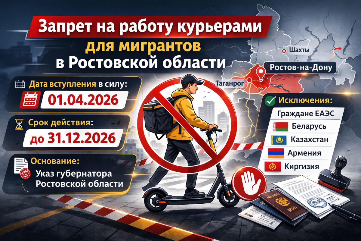 Согласно указу губернатора Ростовской области, мигранты не смогут работать с 1 марта (то бишь дата уже вышла) в сферах производство драгоценных металлов, деятельность фитнес-центров.