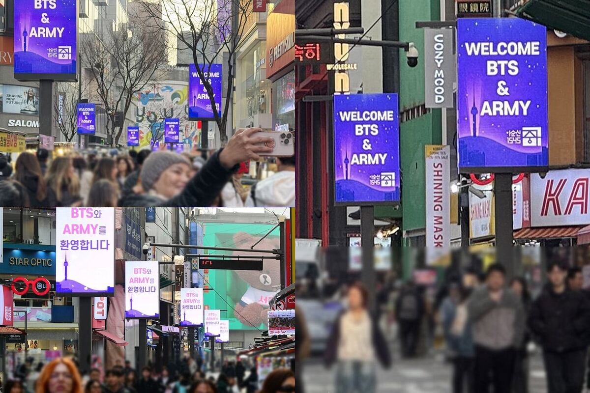 Район Мёндон, расположенный всего в 2 км от места проведения концерта, уже заполнен приветственными видеороликами и указателями. На 22 медиа-панелях транслируются надписи «Добро пожаловать, BTS и ARMY». Власти района Чун-гу провели масштабную весеннюю уборку улиц при участии местных жителей и представителей бизнеса, включая сотрудников Lotte Department Store.