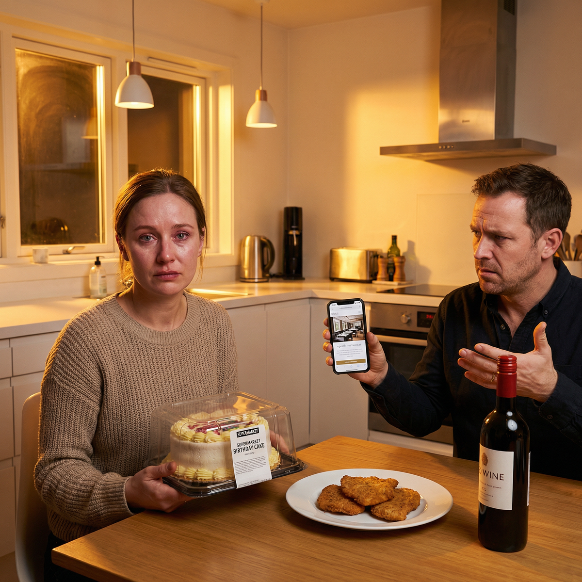 Дмитрий действительно купил торт. Поставил на стол с некоторой торжественностью, как будто выполнил сложное задание. Сказал «с днём рождения», обнял, подарил косметику в красивой коробке — явно купленную в последний момент, потому что на упаковке ещё была наклейка с ценой, которую он не заметил.