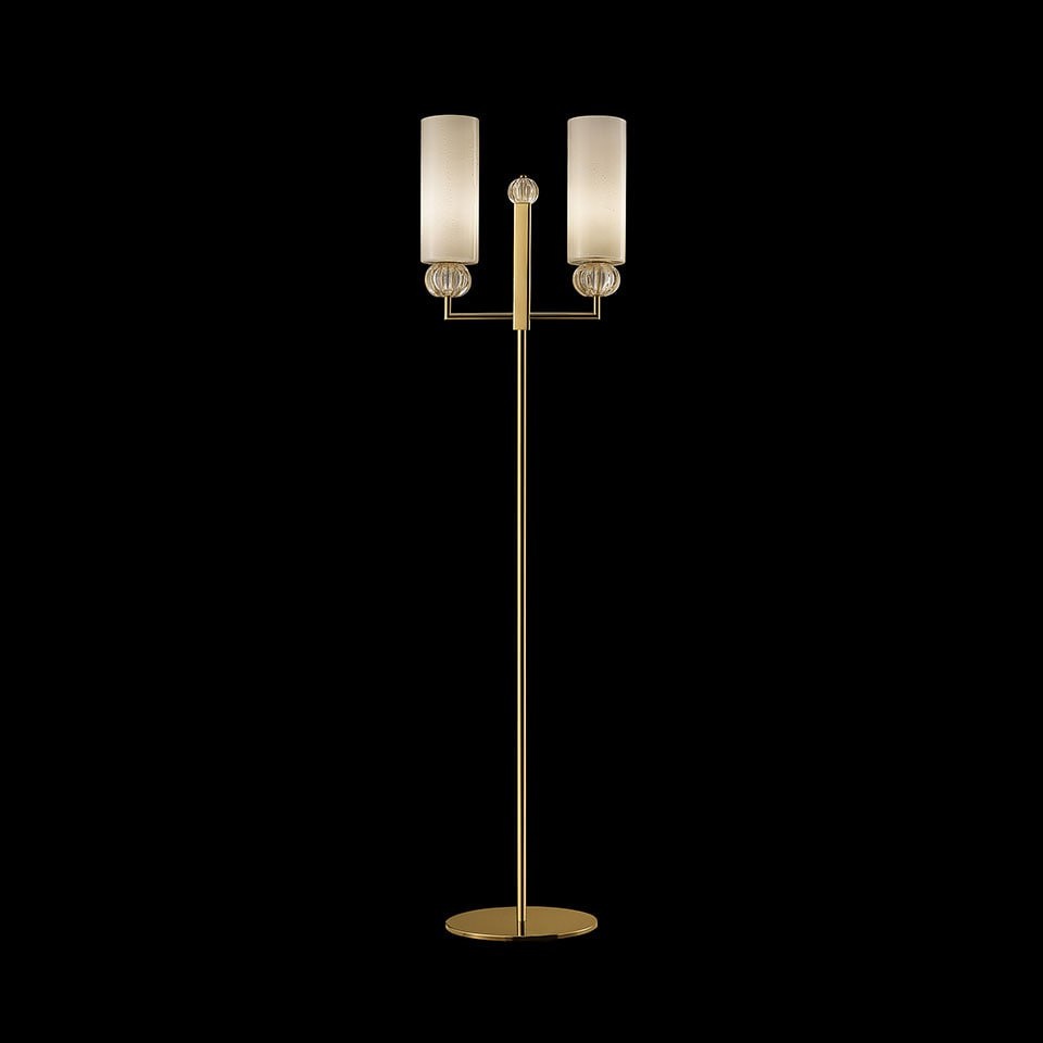 Торшер Gallia от Barovier&Toso Изысканная модель в классическом стиле. Плафон-рассеиватель из муранского стекла ручной работы теплого бежевого цвета с золотой «соломкой». Декоративный сферический элемент под плафоном может быть выполнен в разных вариантах цвета: бежево-золотом, бежево-зеленом или бежево-золотом с добавлением черного пигмента. Металлическая арматура светильника покрыта гальванизированным золотом. В наличии в AURRUM