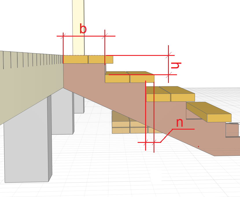 Если все сделано правильно, ноги сами будут находить ступени, а мы спускаться вниз или забегать на крыльцо не задумываясь. Если вы правильно рассчитаете высоту и ширину ступенек, подниматься и спускаться можно будет едва ли не с закрытыми глазами. В классической архитектуре высоту и ширину ступеней рассчитывали по так называемой формуле Блонделя 2h+b=620(+/-20)мм. Где h — высота ступени, b — ширина, 620 мм — средняя длина шага человека. Эту схему расчетов архитекторы всего мира исподльзуют уже третье столетие. Результат: с раннего детства и рослый, и невысокий человек, и в России, и в большинстве регионов мира делали первые шаги по лестницам со ступенями высотой 14-15 см, и шириной 27 см (с учетом свеса — около 30 см). Такую и надо делать — даже если это лестница перед хозблоком или садовым домиком. И, что примечательно, именно такую лестницу в загородном доме сделать проще всего — потому что после стройки наверняка остаются доски сечением 50Х150 мм или близких к нему значений. Скол