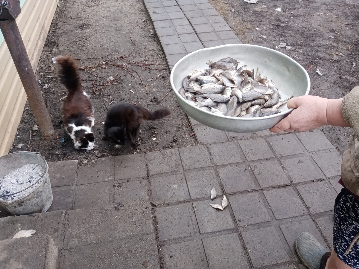 Приветик 🥰 Сегодня что-то морда лица весь день какая-то красная и горячая была, да и по сей так. Как-то даже потряхивает. Еще прыщами болючими всю обнесло. На подбородке вообще прям рог какой-то вырос. Видимо от того, что прогулялась с утра по такой промозглой погоде с телефоном, снимая свою домашнюю живность в их четверговый сегодняшний рыбный день, в халате просто (вроде в теплом)... Ну что с меня возьмешь, с крашеной 😁🙃🙈 Так и тянет всё забыть и представлять себя молодой и здоровой;)) Всю рыбу эту, что с Никитой за лето наловили, любимцам за зиму и скормили потихонечку. Так поняла, что ее надо сразу, не отходя от кассы жарить, а с морозилки у нее какой-то привкус странный становиться, сильнее как-то прудом отдает (да это меня просто форель разбаловала 😁), да и лень, если честно, жарить стоять, когда там и есть особо нечего (но привкус это главная причина) Мама спрашивала - может оставим немножко, но не ей же стоять у плиты, а я решила последнюю энергию лучше на блинчики потра