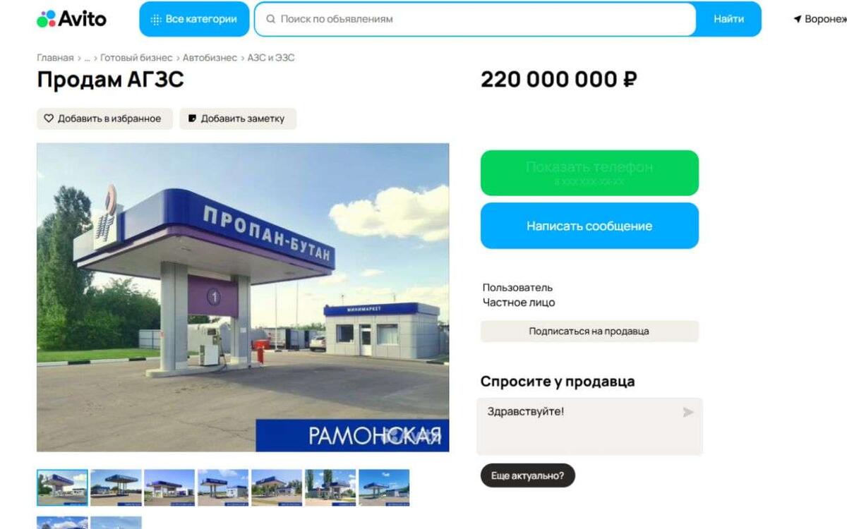 Сразу на 50 млн рублей подешевела выставленная на продажу сеть из девяти автомобильных газозаправочных станций (АГЗС), восемь из которых находятся на территории Воронежской области. Стоимость действующего бизнеса обновили на сайте объявлений «Авито» во вторник, 17 марта. Владелец принял решение снизить цену до 220 млн рублей. Все объекты лота находятся в собственности продавца, что подтверждено полным пакетом документов и действующей лицензией. В объявлении подчеркивается, что заправки находятся в хорошем рабочем состоянии. Снижение цены может повысить инвестиционную привлекательность предложения. Расчетный срок окупаемости бизнеса указан в пределах шести-восьми лет. Напомним, что в январе 2025 года за эти заправки, входящие в сеть «Интрансгаз», просили 290 млн рублей. Спустя без малого год стоимость снизили до 270 млн рублей. В перечень входят торговые точки, расположенные на территории Верхнехавского (2 объекта), Острогожского (2), Лискинского (2), Рамонского (1) и Каменского (1) рай