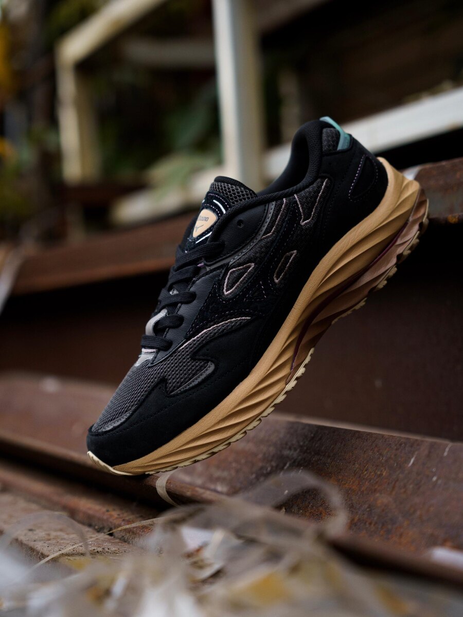 Силуэт вдохновлён классической линейкой Wave Rider, которая известна балансом амортизации и стабильности. Верх из сетки и замши добавляет глубины фактуре, а массивная подошва с технологией Mizuno Wave делает пару комфортной на каждый день.