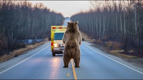 Охотники на вездеходе наткнулись на него в лесу. Медведь не нападал, а кружил вокруг, завывал и уводил за собой. Они пошли за ним и вышли к перевёрнутой машине.