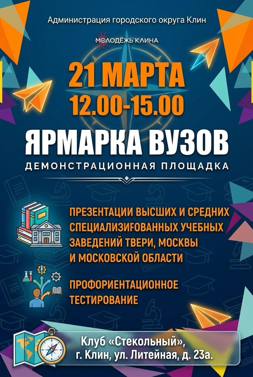 Клин 21 МАРТА в 12:00 в большом зале на одной площадке встретятся высшие учебные заведения из Твери, Москвы и области! Московский филиал Санкт-Петербургского Университета профсоюзов «Институт искусств и информационных технологий» примет участие в образовательной ярмарке, на которой ты сможешь задать все интересующие тебя вопросы об университете. В ПРОГРАММЕ: - Знакомство с вузами и колледжами - Презентации отдельных вузов (по 10 мин., с возможностью задать вопросы о ВУЗе) - Профориентационное тестирование Сайты: msk-gup.ru и msk.gup.ru ВК сообщество: vk.com/inisk Яндекс Дзен: dzen.ru/spbgup ТГ канал: https://dzen.ru/id/6537d0070d3ed760fbd1986c #Зеленоград #Менделеево #СПбГУП #ИИиИТ #Институт #Университет #Химки #Клин #Солнечногорск #Стекольный #Тверь #Клин