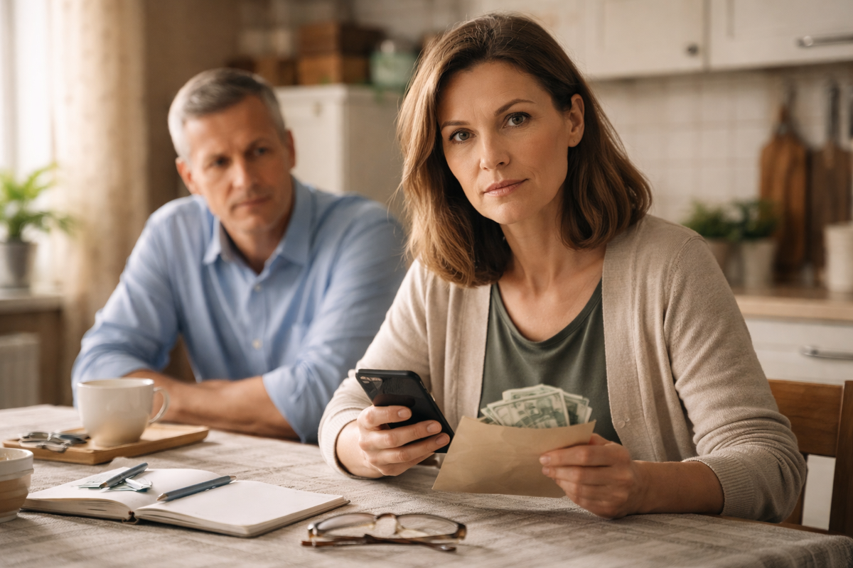 Лариса больше не убирала телефон экраном вниз. Не стирала уведомления сразу. Не прятала руки под столом, когда речь заходила о деньгах. Она сидела ровно, смотрела прямо и чувствовала под ладонью не край клеёнки, а гладкую бумагу конверта, который теперь лежал на виду.