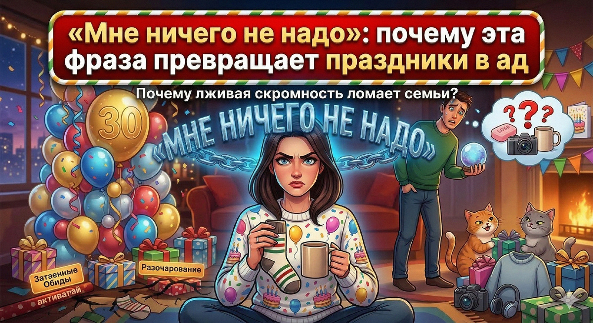 Давайте нальем себе чего-нибудь согревающего, устроимся поудобнее и разберем величайшую бытовую манипуляцию всех времен и народов — подарочную ловушку под кодовым названием «Мне ничего не надо».