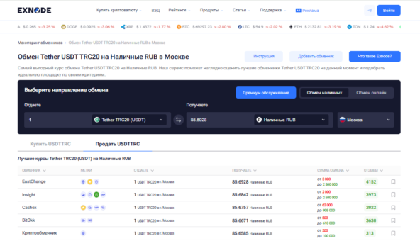 Первый шаг — найти проверенный сервис. Вместо того чтобы тратить время на десятки сайтов, стоит воспользоваться платформой Exnode, где собраны данные по офлайн криптообменникам Москвы с подтвержденной репутацией, реальными адресами и актуальными контактами.