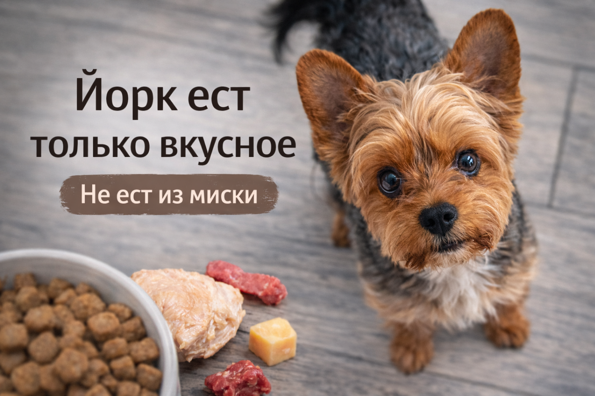 Йорки это очень быстро схватывают. Один раз дали что-то вкуснее — он запомнил. Второй раз дали — он уже ждёт. И дальше он не просто не ест, а проверяет, дадут ли ему что-нибудь другое.
