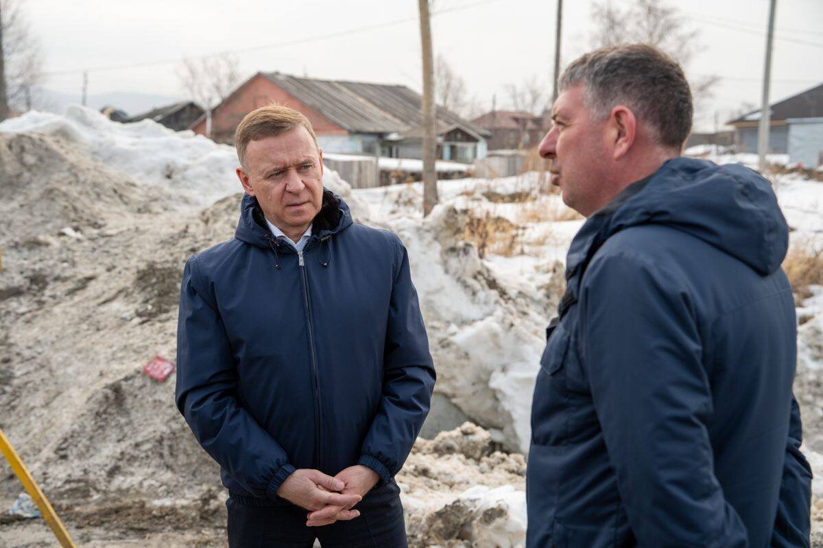 В Южно-Сахалинске полным ходом идут противопаводковые мероприятия. Особое внимание уделяется частному сектору и планировочным районам. В четверг мэр Сергей Надсадин совместно со специалистами профильных структур проинспектировал ход работ во Владимировке. В планировочном районе работы по расчистке водоотводных канав и вывозу снега ведутся сразу на нескольких улицах: Кирпичной, Сибирской, Льва Толстого, Проточной и 1905 года. Задействованы 11 единиц спецтехники и три бригады рабочих. - Снега много, приходится его убирать. Где-то есть наледь, засоры в трубах. Всё расчищаем, чтобы вода свободно уходила, - рассказал водитель экскаватора завода им. Федотова Сергей Зеленов. Работы по расчистке канав и водовыпусков на всех участках ведутся усиленными темпами для предотвращения подтоплений. Мэр Сергей Надсадин поручил вести непрерывный мониторинг противопаводковой обстановки, следить за графиком работ и при необходимости своевременно корректировать его. - Работа организована с четким пониман