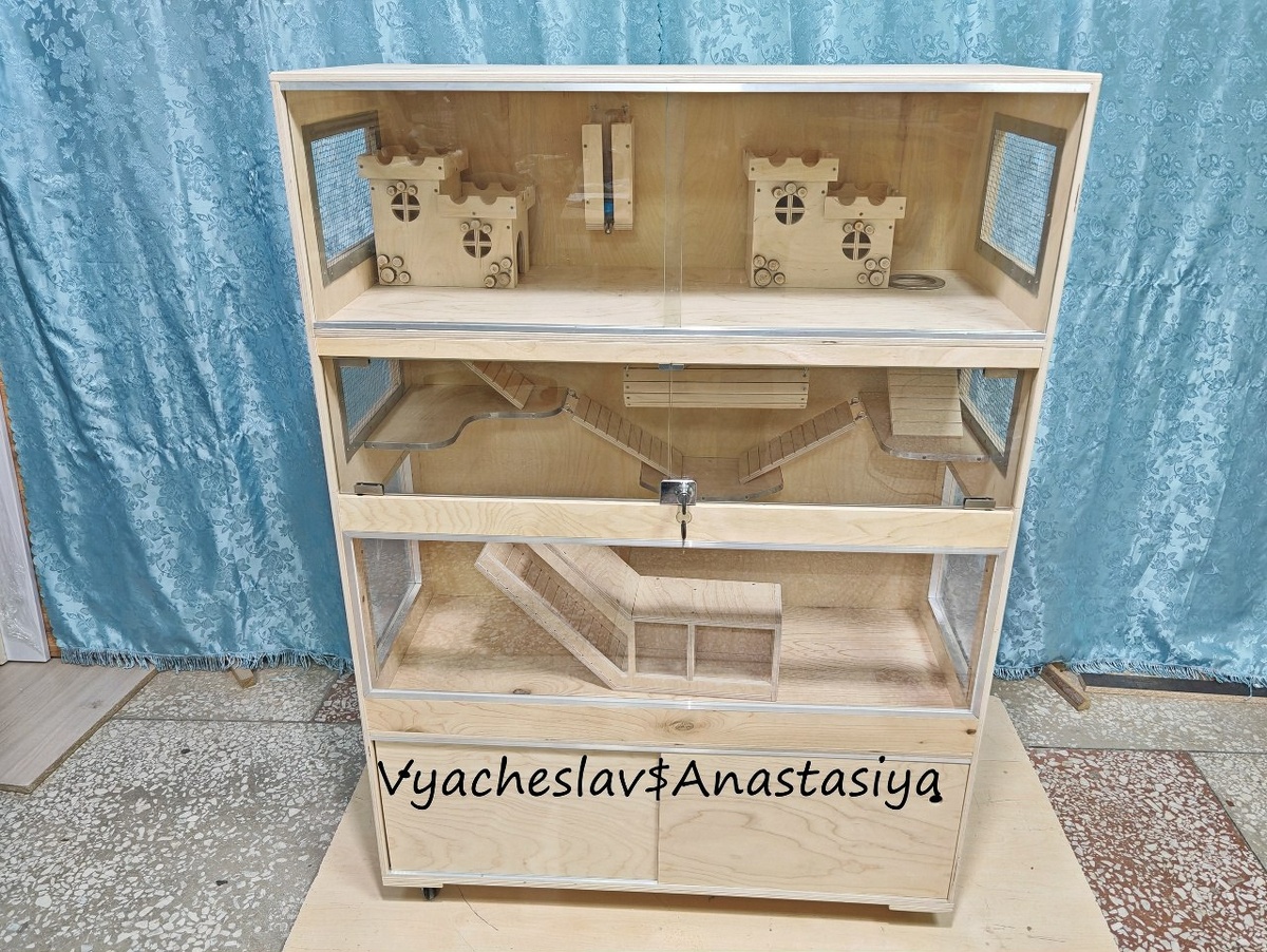 !🌞 Интересный проект для монгольских песчанок.!! С большим вдохновением сделал шикарное поместье для милых грызунов.В нижней части стеллажа отсек для кормов с раздвижными дверками.В средней, есть куда насыпать опилки высотой 30-35см.Также установить подземный туннель с комнатой ( будет куда прятать корм) . Полочки с антигрызом , лесенки .подвесной туннель. В верхний отсек где можно попить, покушать питомцам. Дверки раздвижные. 🎀 Размер: 1200/900/400 мм 🎀 Отправляем в Краснодарский край город Сочи. 🎀 Работаем под заказ, изготовим изделия любых размеров и цветов. Доставляем по всей России 🎀 М-27 цена