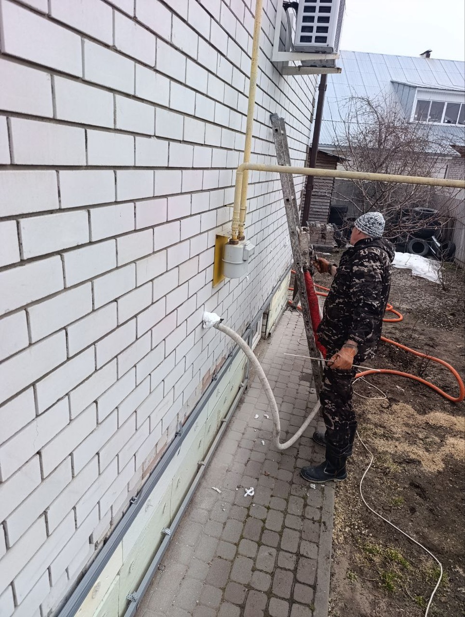 В составе стены 🧱 в воздушном зазоре также был пенопласт , закачано около 10 куб .