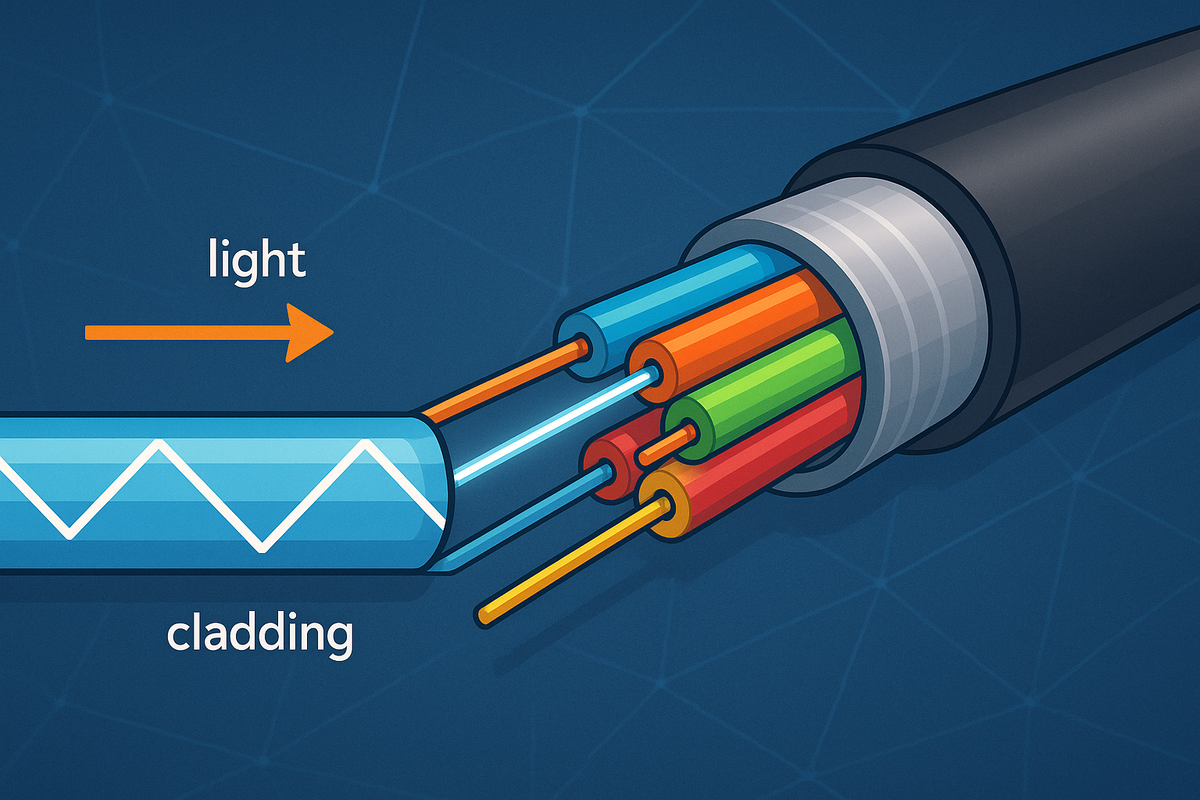 Оптоволокно представляет собой инновационную технологию передачи данных, основанную на использовании светового сигнала. В данной системе оптическое волокно служит средой, по которой информация передается от одного узла к другому. Информация, отправляемая через волокно, конвертируется из электрического сигнала в световой луч, а на приемной стороне она снова преобразуется в электрический сигнал. Форматы передаваемой информации могут варьироваться от видео и аудио до телеметрических данных. В дальнейшем мы подробнее разберем функционирование оптических кабелей. Связь, осуществляемая с помощью оптоволокна, основывается на передаче светового сигнала. Сначала электрический сигнал преобразуется в свет, а затем передается по волокну. На приемной стороне этот процесс обратим — свет снова становится электрическим сигналом. Передача начинается с того, что передатчик отправляет аналоговую информацию в кодер или преобразователь. Это необходимо для конвертации аналогового сигнала в цифровой, которы
