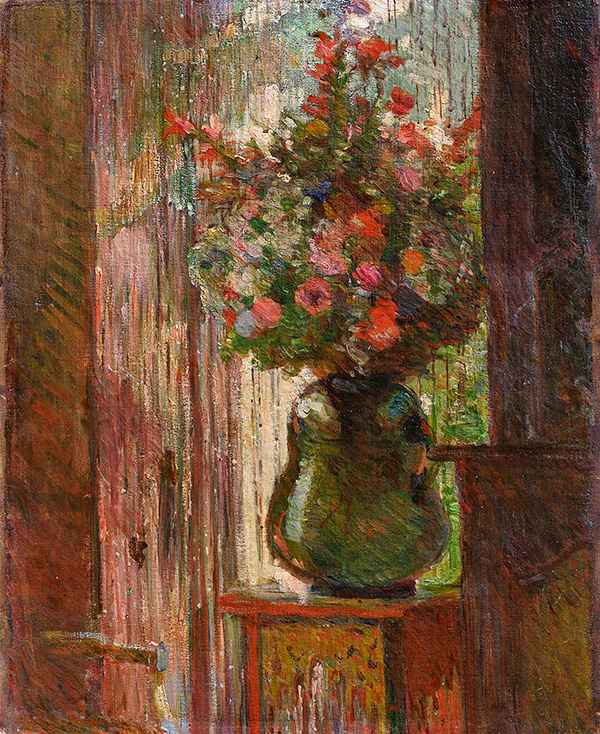 Мари Бракмон (1840–1916) — одна из женщин-импрессионисток, получивших значительное признание при жизни, но впоследствии исчезнувших из истории искусства. Это произошло несмотря на её участие в знаменитых новаторских импрессионистских выставках, навсегда изменивших мир искусства. Картина «Букет цветов у окна» представляет зрителю букет цветов, составленный в вазе, созданной мужем Мари Бракмон, Феликсом Бракмоном (1833–1914). Она, вероятней всего, была написана в доме супругов. Как и большинство других женщин-импрессионисток, Бракмон в основном писала сцены из частной жизни, поскольку в то время для женщин-художниц было социально неприемлемо работать в одиночку вне дома. Дата создания работы неизвестна, но мы знаем, что в 1886 году Мари Бракмон познакомилась с Полем Гогеном (1848–1903), с которым она работала в Севре и выставлялась на 8-й выставке импрессионистов. По предложению Гогена Бракмон начала смешивать масляные краски с мелом, чтобы добиться матового эффекта, напоминающего па