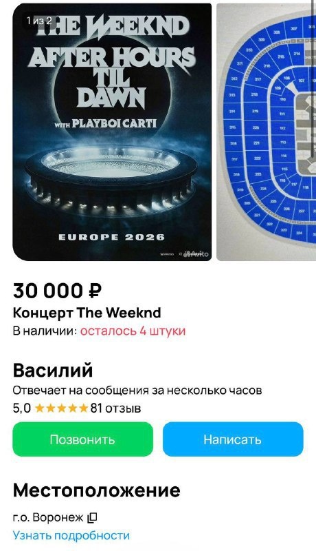 В Воронеже продают билеты на концерт The Weeknd в Мюнхене за 30 тысяч рублей каждый