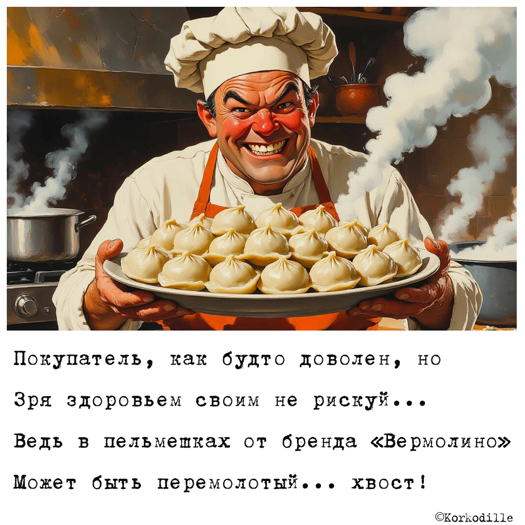 Покупатель, как будто доволен, но Зря здоровьем своим не рискуй... Ведь в пельмешках от бренда «Вермолино» Может быть перемолотый... хвост! Всегда с опаской относился к полуфабрикатам:)... Говорят, путь к сердцу мужчины лежит через желудок. Но если на этом пути встречаются пельмени от бренда ххх, есть риск, что до сердца вы просто не дойдете. Есть вариант, что ваш ужин превратится в детективное расследование. Внимательно смотрите на
