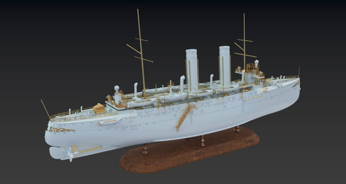 Комбриг показали рендеры модели крейсера HNLMS Zeeland (1897) в 1/700 масштабе