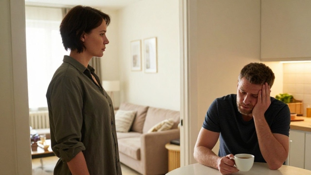 Игорь вошёл на кухню. Встал у холодильника — лицо усталое, взгляд тот, которым смотрят на конфликт, в котором не хочется быть.