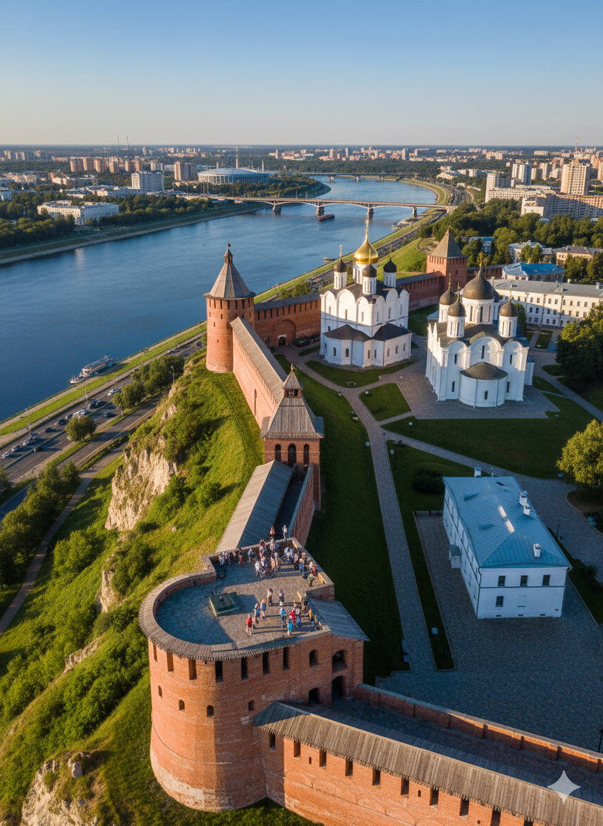 - Когда лучше всего приехать в Нижегородский кремль? Летом и в начале осени — доступен полный круговой маршрут по стене. Зима тоже красива, но часть смотровых площадок закрыта из-за гололёда, и боевой ход работает только до Часовой башни.