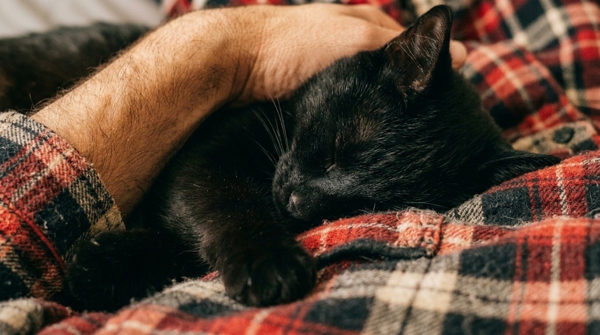 А на его груди, вытянувшись во всю длину и уткнувшись мокрым черным носом ему прямо в шею, спал наш ночной «монстр». Кот вибрировал всем телом, издавая густой, басистый тракторный гул, и медленно, в ритме дыхания деда, перебирал лапами его фланелевую пижаму, делая «молочный шаг».