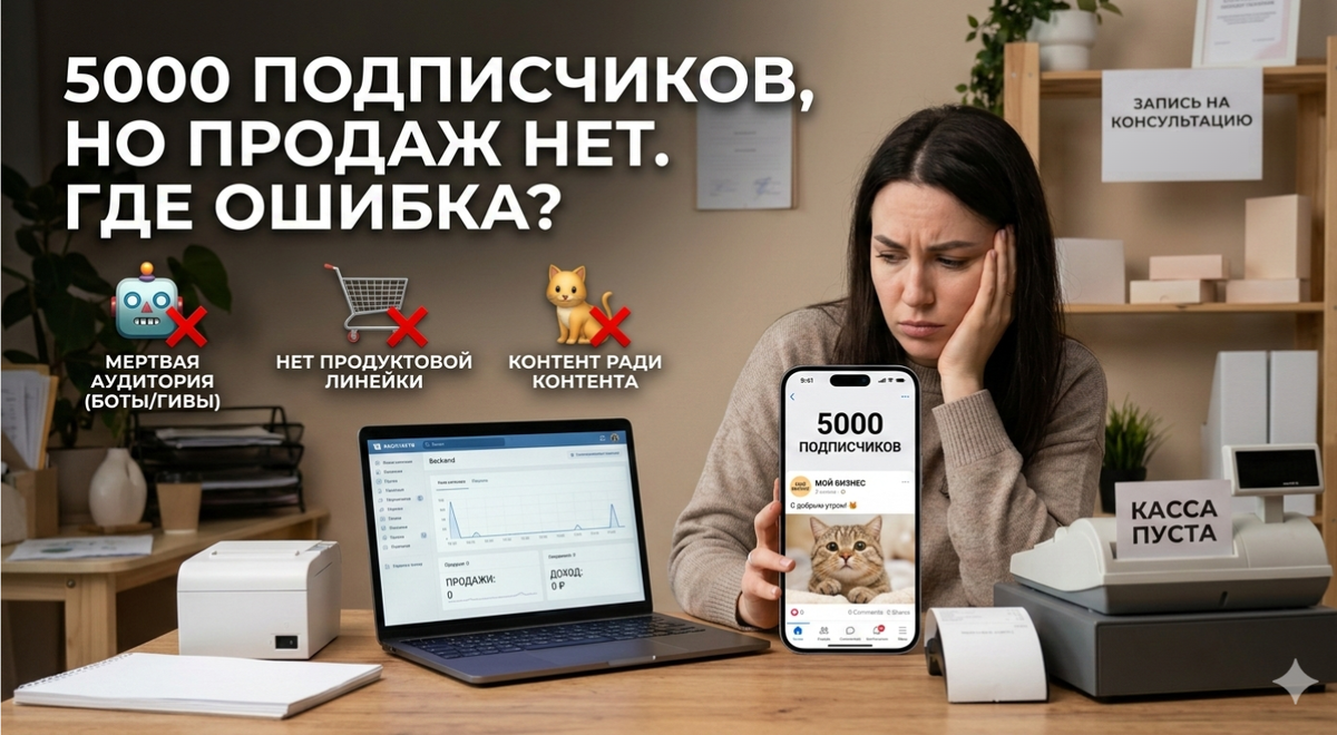 Многие владельцы бизнеса до сих пор гонятся за количеством подписчиков, забывая про их качество. Если вы постите контент каждый день, а продаж нет, проверьте себя по этим 3 пунктам: 1.Мертвая аудитория. Накрученные боты не покупают. Никогда. 2.Нет продуктовой линейки. Вы не объясняете, что конкретно продаете и как это купить (нет удобного меню, виджетов, товаров). 3.Контент ради контента. Доброе утро и котики не закрывают возражения клиентов. В 2026 году во ВКонтакте работают не лайки, а выстроенная воронка продаж. Если вы узнали свою группу — пора менять стратегию. Записывайтесь на бесплатную консультацию по ссылке.