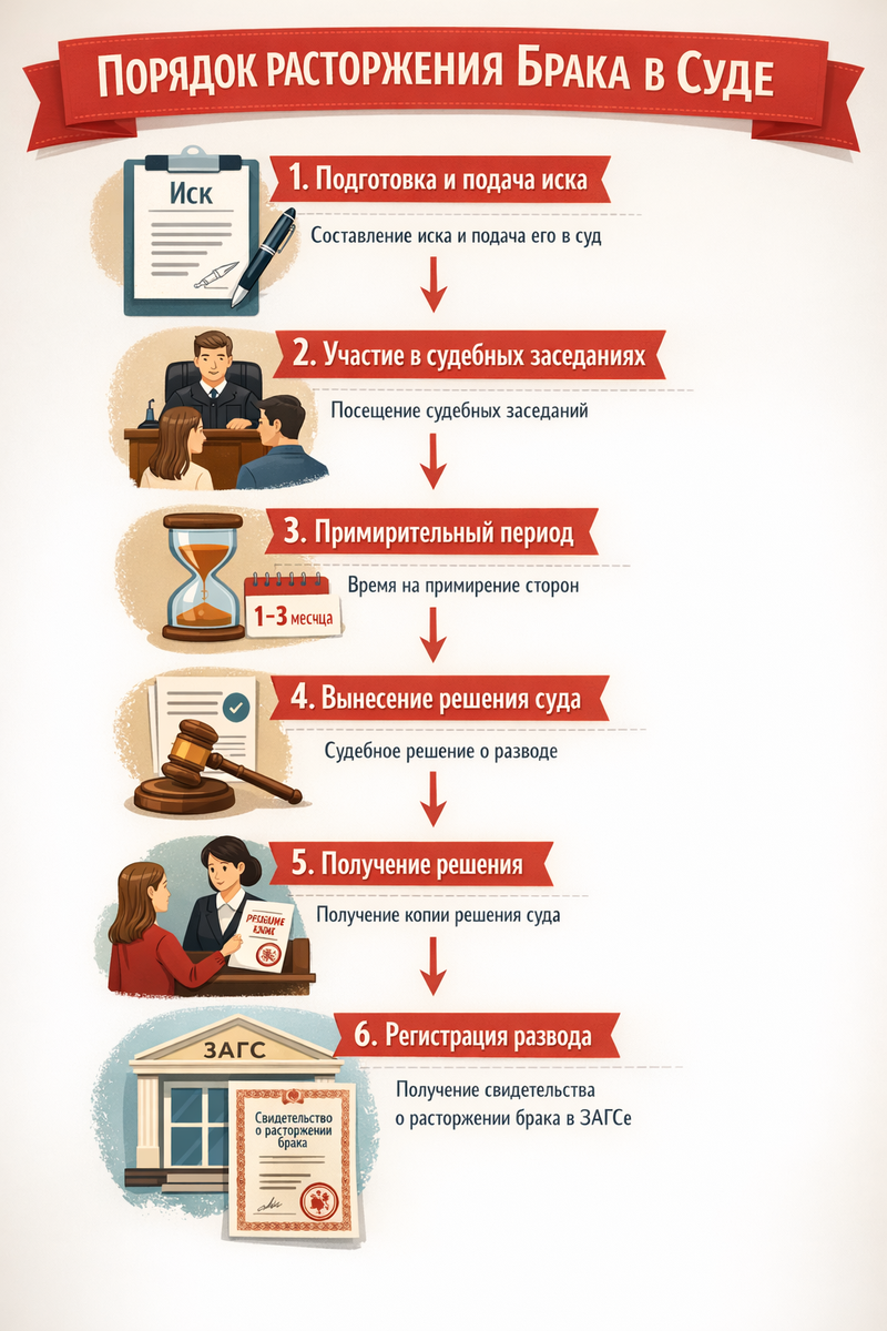 Ниже — понятный алгоритм, как проходит развод в мировом суде.