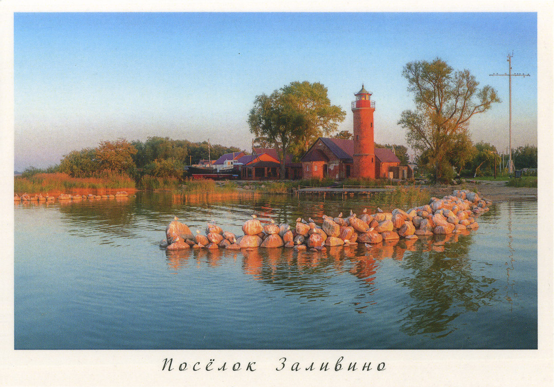 Нас впустили посмотреть на экспозицию — без экскурсии, бесплатно. Мы ознакомились с экспонатами, принесённым в дар Домику жителями Заливино, полюбовались творчеством местных прикладников и художников, купили пару очень симпатичных открыточек. И отправились назад к маяку.