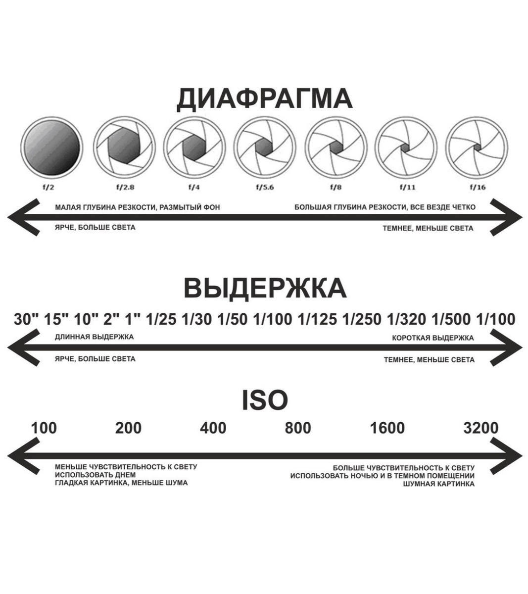 Управляем экспозицией с помощью трёх инструментов: диафрагма, выдержка, ISO. В фотографии их называют «треугольником экспозиции». Если поймёте, как они дружат друг с другом, — сможете снимать в любых условиях.
