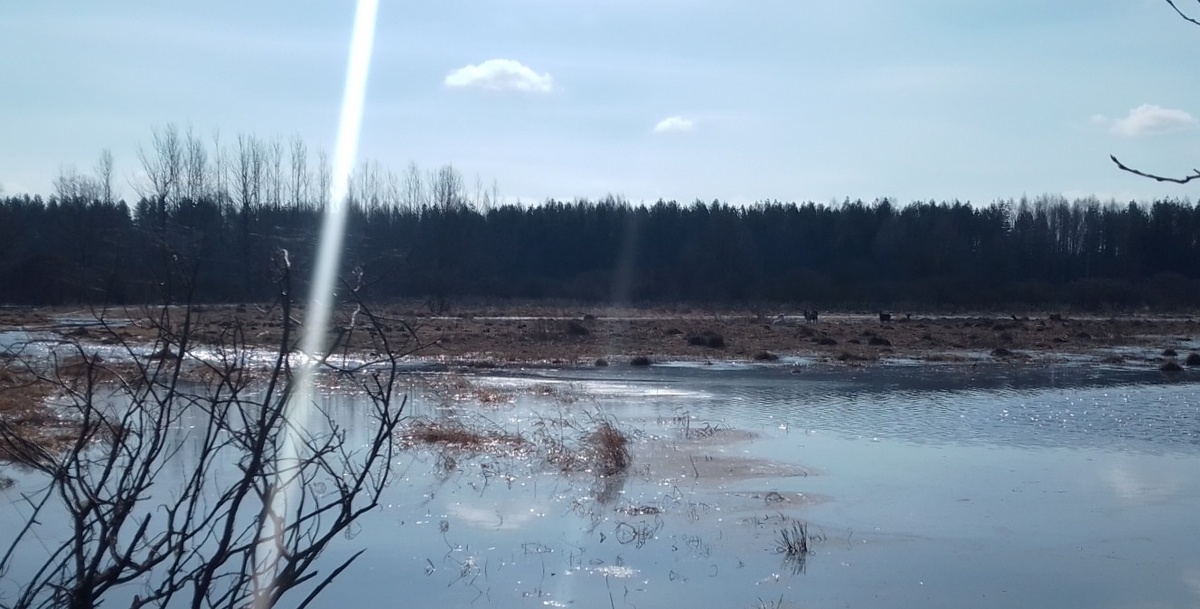 Вода течёт из реки на луг, разрезая его на отдельные острова - процесс начался ещё вчера, но козы не сдаются, ночуют на островах, а во время пастьбы