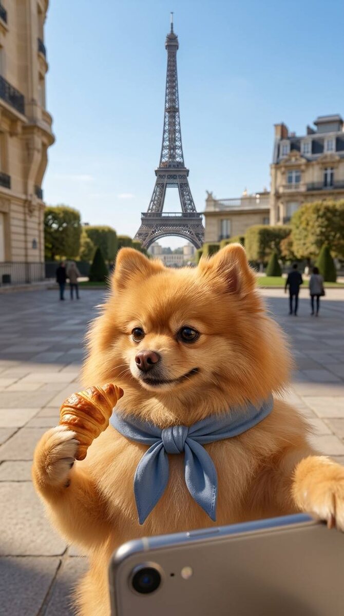 😊😊😊😊😊⬇️ Фотореалистичная 3D-картинка, “селфи туриста”. Шпиц идентичен референсу по мордочке, глазам, шерсти и окрасу. Локация: Венеция, солнечный день, узкий канал с бирюзово-зеленой водой, гондолы на заднем плане, старинные фасады в теплых оттенках, цветы на балконах. Цвета сочные чистые и гармоничные (теплые стены, яркая вода, голубое небо), высокий контраст и супер-детализация, без неона/кислоты. Поза: шпиц делает селфи с вытянутой лапой, слегка поворачивает мордочку в камеру, выражение “гордый путешественник”. Второй лапой держит маленький шарик мороженого в вафельном стаканчике (без бренда). Камера: смартфон-фронталка wide 24–26mm экв., легкая селфи-дисторсия, фокус на мордочке, фон чуть размытый, блики на воде. Ограничения: никаких надписей/логотипов/водяных знаков/табличек/уличных знаков/текста, без мультяшности. --ar 9:16 --style raw Делала в нейросетях➡️ тут Обучение работе с нейросетями пиши ➡️ тут