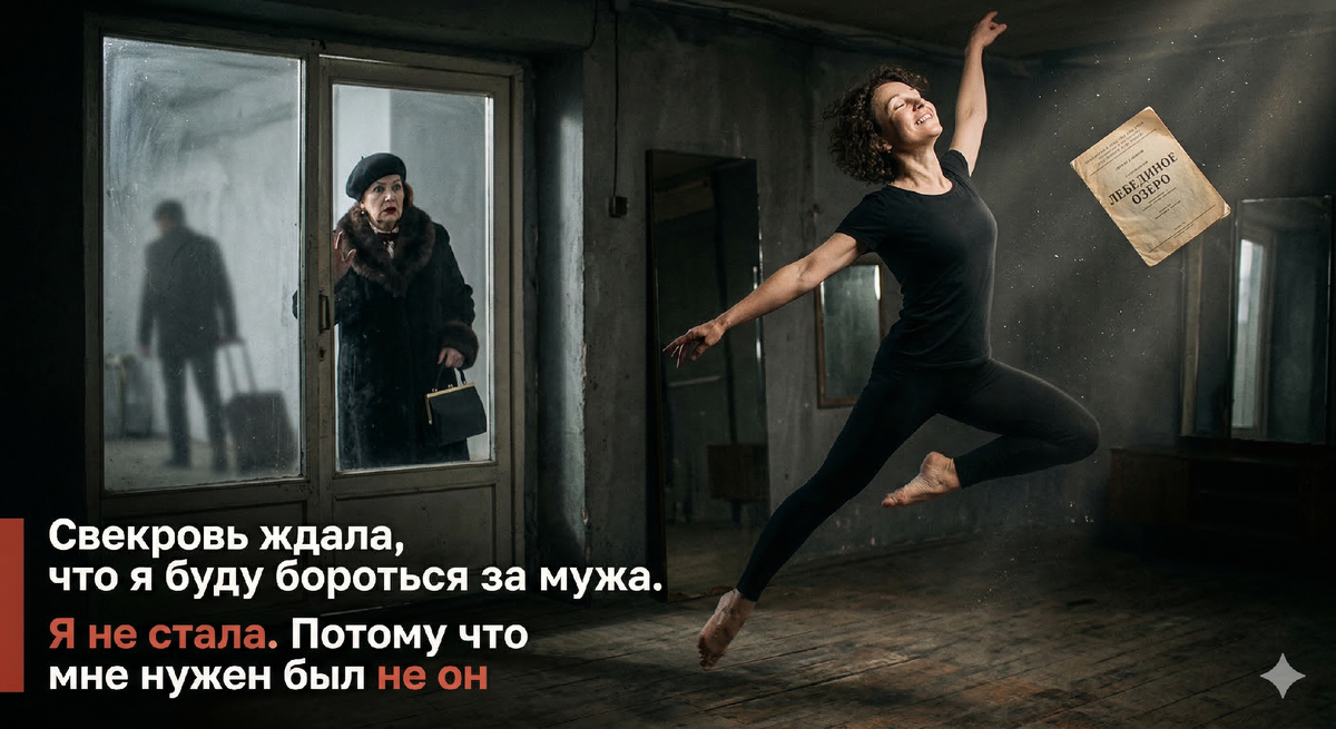Я закрыла глаза. И вдруг — щелчок. Я перестала видеть себя. Я почувствовала, как весенний воздух, пробивающийся через подвальное окно, касается моей шеи. Мои руки сами пошли вверх — не по команде, а потому что им стало тесно. Я кружилась, и пыль, поднятая моими ногами, казалась мне золотой пыльцой. В этот момент я была не женой Игоря, не невесткой Валентины Петровны, не хранителем фондов. Я была просто Пульхерией. Живой.