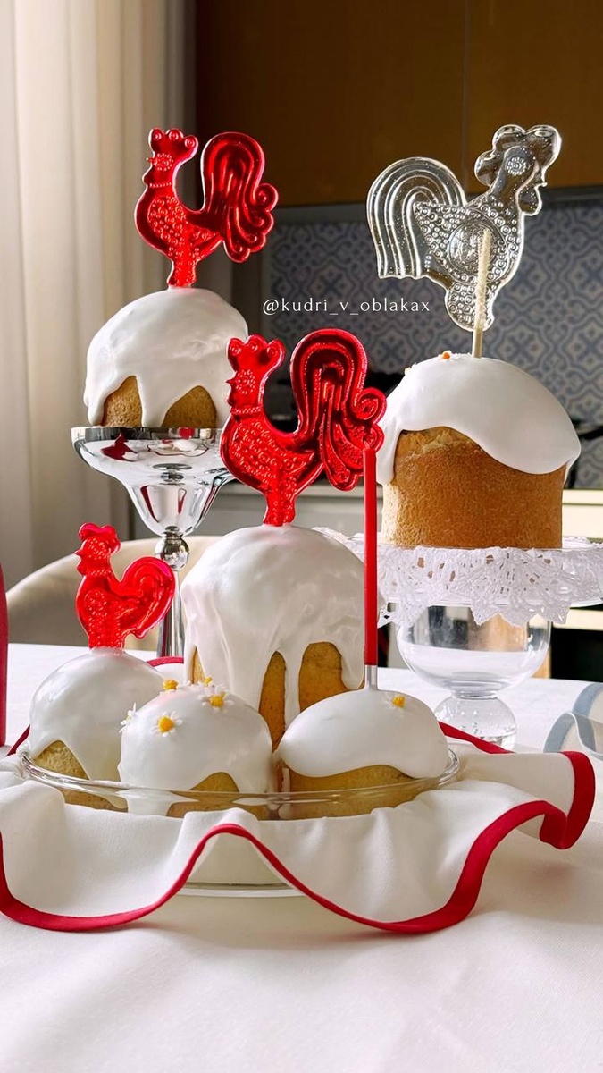 Бонжур! До пасхи осталось меньше месяца и мы хотим вдохновить вас на подготовку к этому светлому празднику. Мы изучили тренды и сделали для вас подборку самых популярных декоров для "царя" пасхального стола. Русский стиль перешел из зимы в весну и начал украшать все вокруг. Карамельные петушки легко крепятся на кулич, благодаря палочке, на которой они находятся, и сразу задают праздничную атмосферу. Если вам не хочется украшать кулич петушком классического цвета, то можно приеобрести форму для петушка, самостоятельно сварить карамель и добавить любой краситель, который вам по душе На самом деле кулич без декора тоже выглядит очень празднично и впишется в любую сервировку. Торжественный белый цвет украсит любой стол и никак не произведет впечатление "скучного" оформления. Кто-то использует настоящие цветы, кто-то вафельные или из крема (для кремовых цветов идеально подойдет белково-заварной крем). Смотрится очень необычно и по-весеннему. Очень красивый пасхальный декор для кулича. Ш