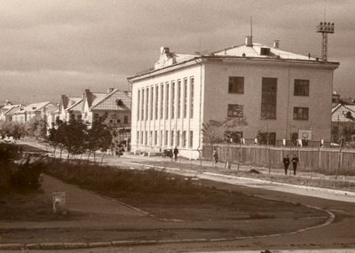 Городской дворец спорта в Озерске. Ещё с ампирным украшением на крыше. СК "Гранит", в котором тренировался чуть ли не каждый озерчанин в своё время. Какие секции там были? Наверное, только регби. Ну и, может быть, кёрлинга).