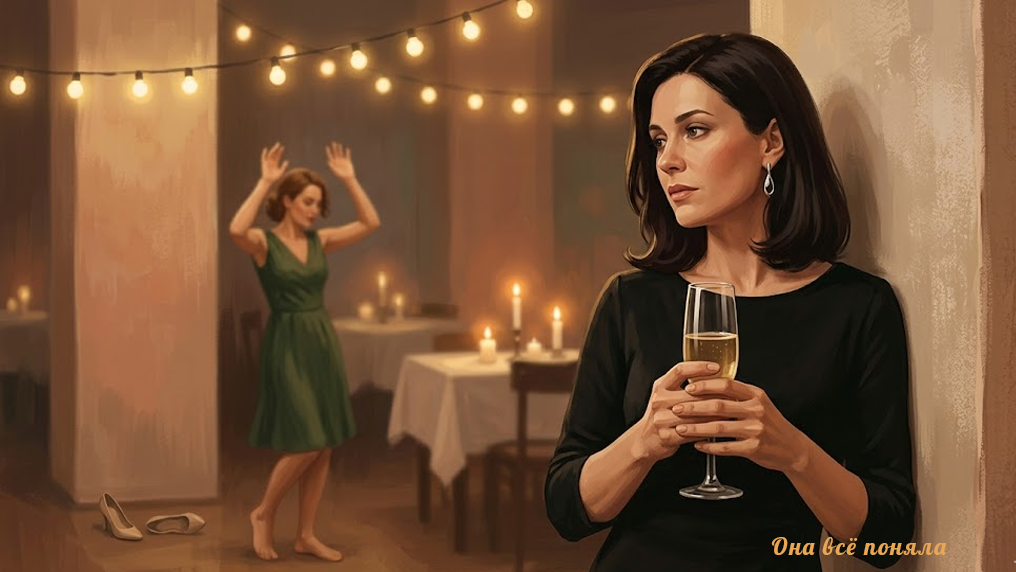 Она стояла у стены, между колонкой и фикусом в горшке, и держала бокал обеими руками — ровно, как свечку. Пузырьки поднимались всё реже. Музыка играла что-то итальянское, незнакомое, и ресторанный зал гудел от голосов, от смеха, от звона посуды. Дашин юбилей — тридцать пять, полный зал, скатерти белые, шарики у входа.